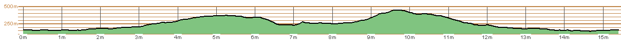 | Length | 15.40 miles | | Time | 06:25:23 | | Ascent | 567m | | Ascent Rate | CL (120 ft/mile) | | Map: