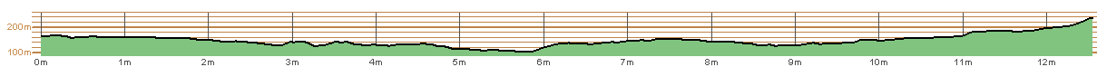 | Length | 12.55 miles | | Time | 04:37:26 | | Ascent | 258m | | Ascent Rate | -- (67 ft/mile) | | Map: