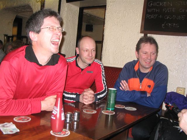 Crew : New Phil, Chris, Eric, Luc, Stuntdouble, Paul The Dentist, Coley, Pete, 3sheds ---- * ---- Fast Climb to Cat and Fiddle - Stakeside and Errwood descent - Awful climb past chapel thingy to Pym Chair - Higher Rainow - Blaze Hill descent to Poachers Kersh brings new Phil Alex turns up late at pub with missing phone....discovered later on the Silk Rd !! New staff in the poachers ! & ;-) No pudding ...so Kersh does the finances ! ---- * ---- |