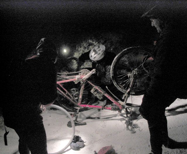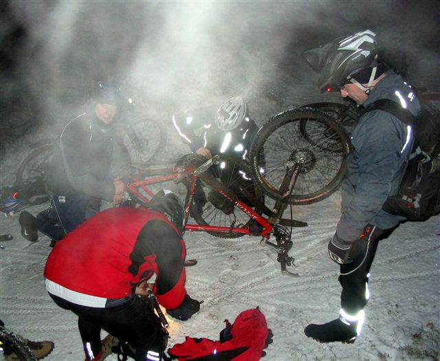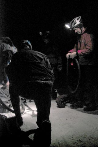 This is during puncture repair attempt 3 .....Andy begins to feel like we are in some weird version of "Groundhog Day" and decides its time to call International Rescue. Spot the "Decoy Palmer" in the left of the picture |