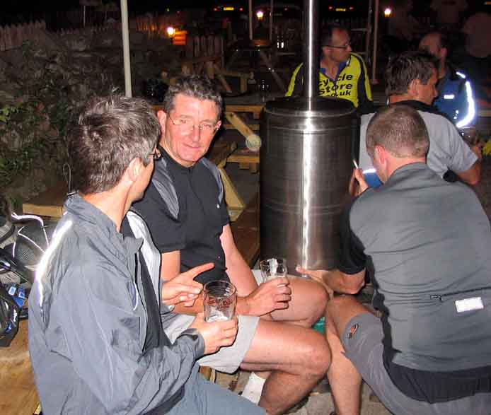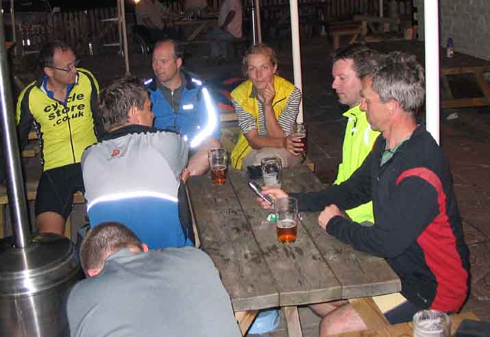Crew : Ed Couch, Big Nick, Kersh, Eric, Pete, Andy, Stunt Double,Paul the Dentist, 3sheds ---- * ---- An idyllic wander through Macclesfield Forest on a perfect summers evening We had the honour accompanying Kirsten around our classic route An innovative section was added to this familiar route (on the approach to Nessit hill from Standing Stone) Two of the "real mates" (Nick and Ed) turned up to make the evening even more special The Church house's beer garden was an obvious choice for our quaffing and scoffing ---- * ---- |