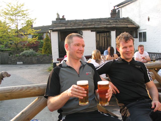 Crew : Pete, Kersh, 3 Sheds, Chris Palmer In da pub later (Post "O" at Teggs Nose) : El Pud, Mawds, Jan, Stevie F, The Doog & Eunice Route: SlackersRide2.html ---- * ---- A select few visit two pubs in the height of midsummer ! A crackingingly warm and delightful evening We enjoyed a 3sheds special "semi urban" route to the Bollin Valley A cheeky one in The Rodney courtesy of Kersh, who unfortunately retired early before we could return the favour A mad dash to the Leathers Smithy to honour a promise of a rendezvous with El Pud et al. ---- * ---- |