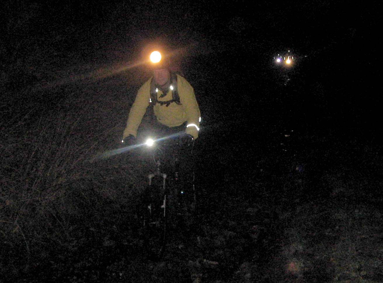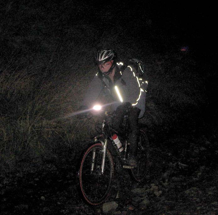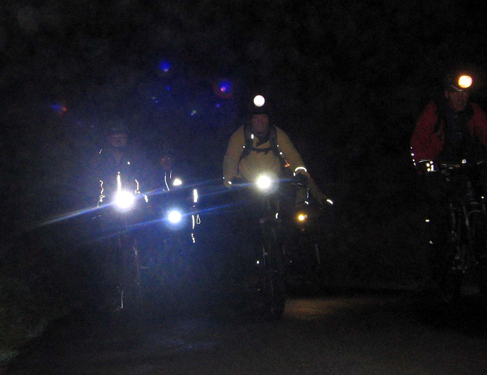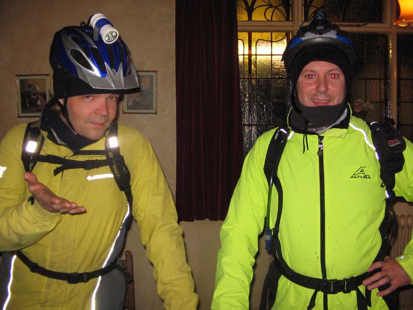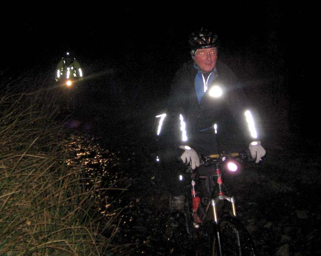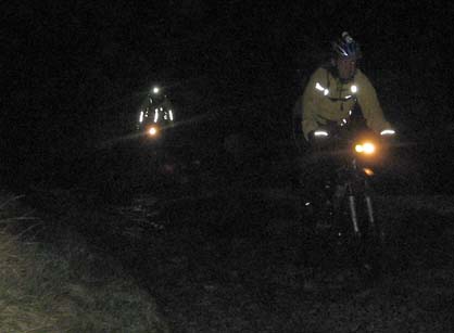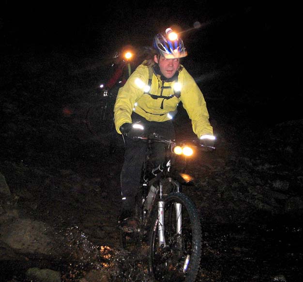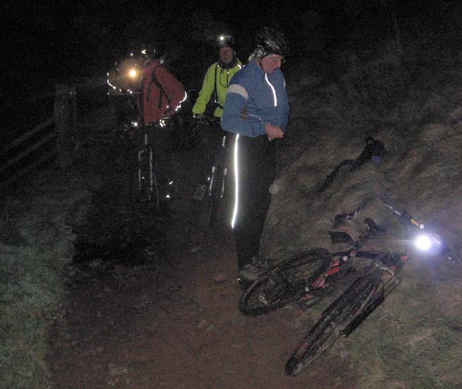 Crew : Eric, Pete, Chris, Andy, Stunt Double, Luc, 3sheds, Croxy, Kersh ---- * ---- 3 hours riding good , after midnight drinking bad A moonlit but chilly route to Three Shires Head, via Cat and Fiddle, Danebower hollow and Cut Thorn The "stunt double" look, perfected by Alex, started to permeate the whole crew. Yellow jackets are the "new black". Action photos by Andy T, borrowed camera from Katie A ---- * ---- |