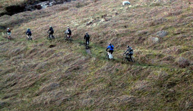 Crew : Pete, Pudding, 3sheds, New Phil, Kersh, Croxy, Eric, Colemeister, Chris ---- * ---- Another Kersh puncture on the ascent to Cat & Fiddle but... we will let him off because it was such a cracking route with virtually no mud ! Offs ? -at least New Phil & Pete...on tech descent into Goyt Pub