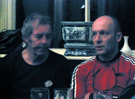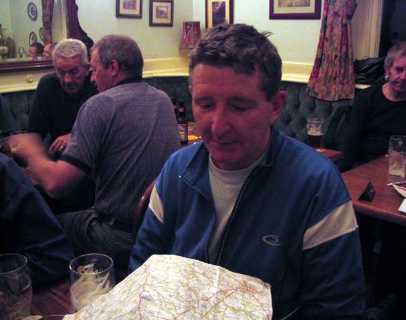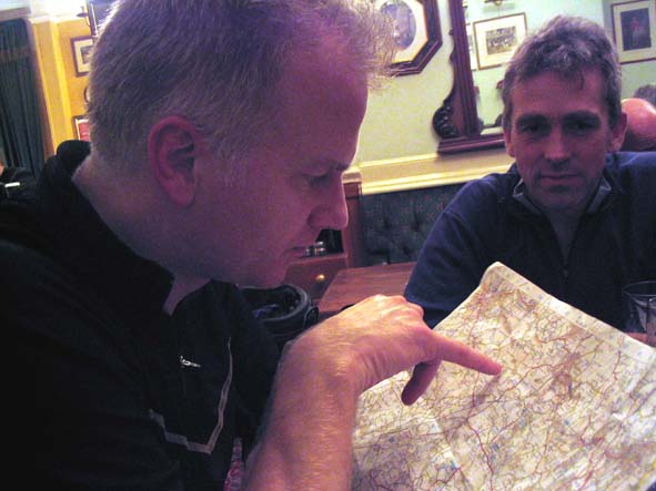 ---- * ---- This momentous occasion was marked with a little pre-ride tipple chez Mawds The ride then commenced with in true "footpath hooligan" style with a desecration of the park opposite King's Girls School Cheshire plains (well a hilly ride to the outskirts of Alderley Edge and Great Wharford) route started with a muddy trek down the Bollin valley (with a little off for the old fellow) Various route options then ensued from the Hare Hill area down to the bottom of Artist's Lane, with a few losing their way. Eventually we all made it to drinking hole one "The Stag's Head", despite instructions to seek out "The Navigation". It was full of Boris Johnson look-a-likes. The second bout of "footpath hooligan" style behaviour was executed by the Thornton contingent on the return journey to Macc and a late curry at the Balti Kitchen. Prestbury Golf Course was subjected to a brutal "off road excursion" by those who are old enough to know better ;-) ---- * ---- |